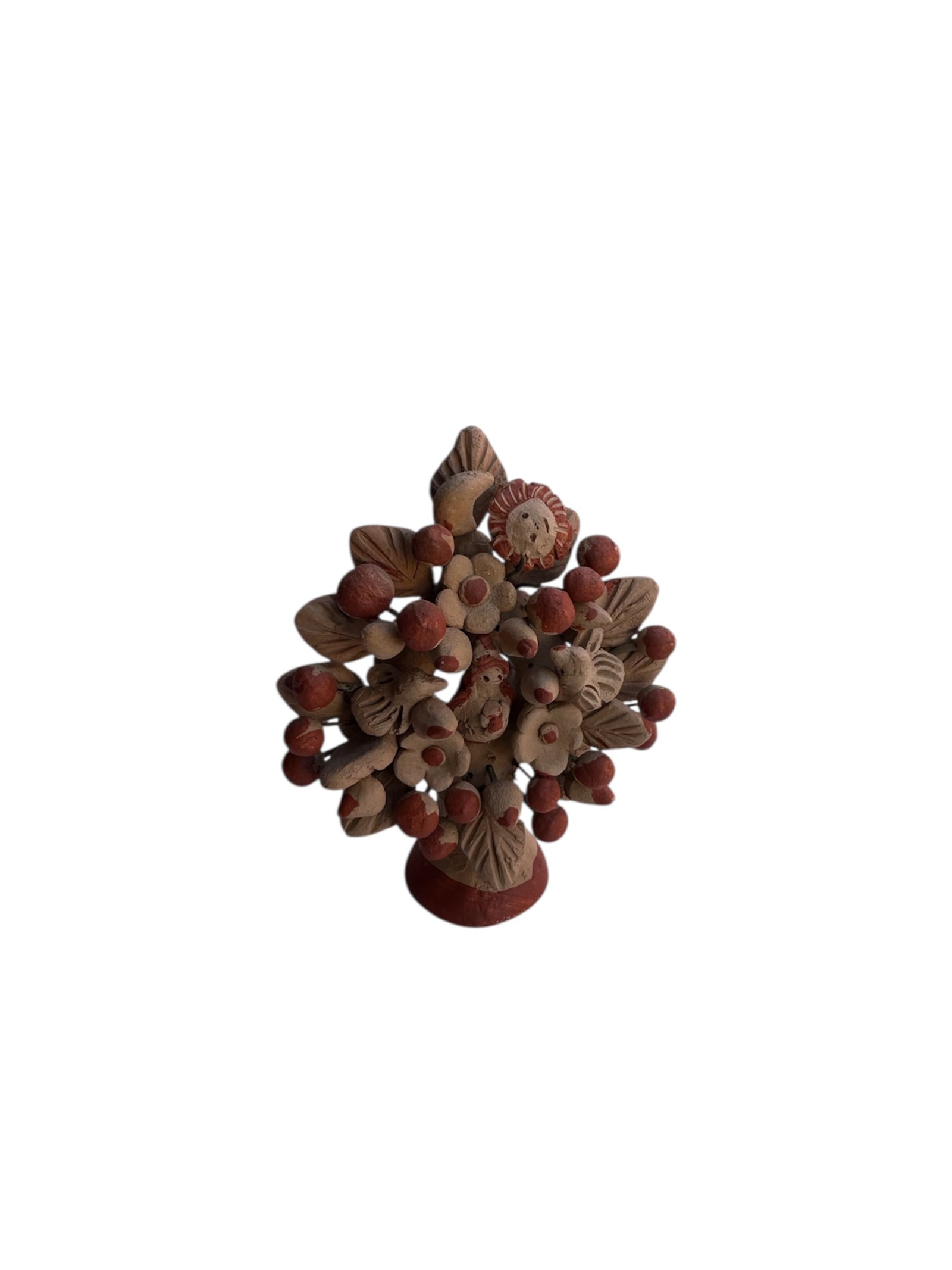 Es una pieza artesanal elaborada a partir de un tipo específico de arcilla que, al ser cocida, adquiere un color rojizo. Este barro se utiliza comúnmente en la fabricación de cerámica decorativa y utilitaria, especialmente en México. El término «pastillaje» hace referencia a un estilo de modelado y decoración que busca lograr un acabado texturizado y detallado, a menudo con relieve.
