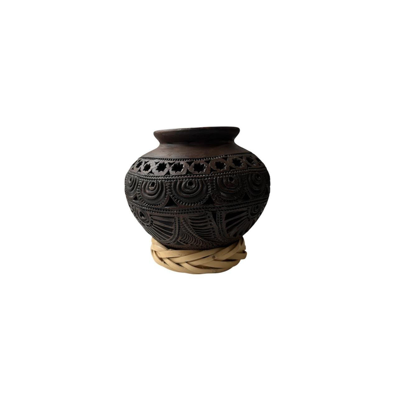 Articulo Decorativo De Barro Negro Calado