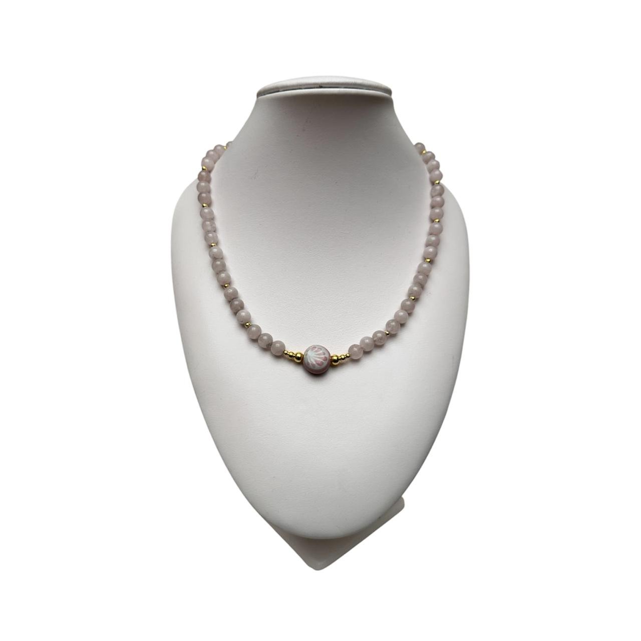 Collar Cuarzo Rosa Con Piedra Chica Fondo Tradicional con Rosa Mik