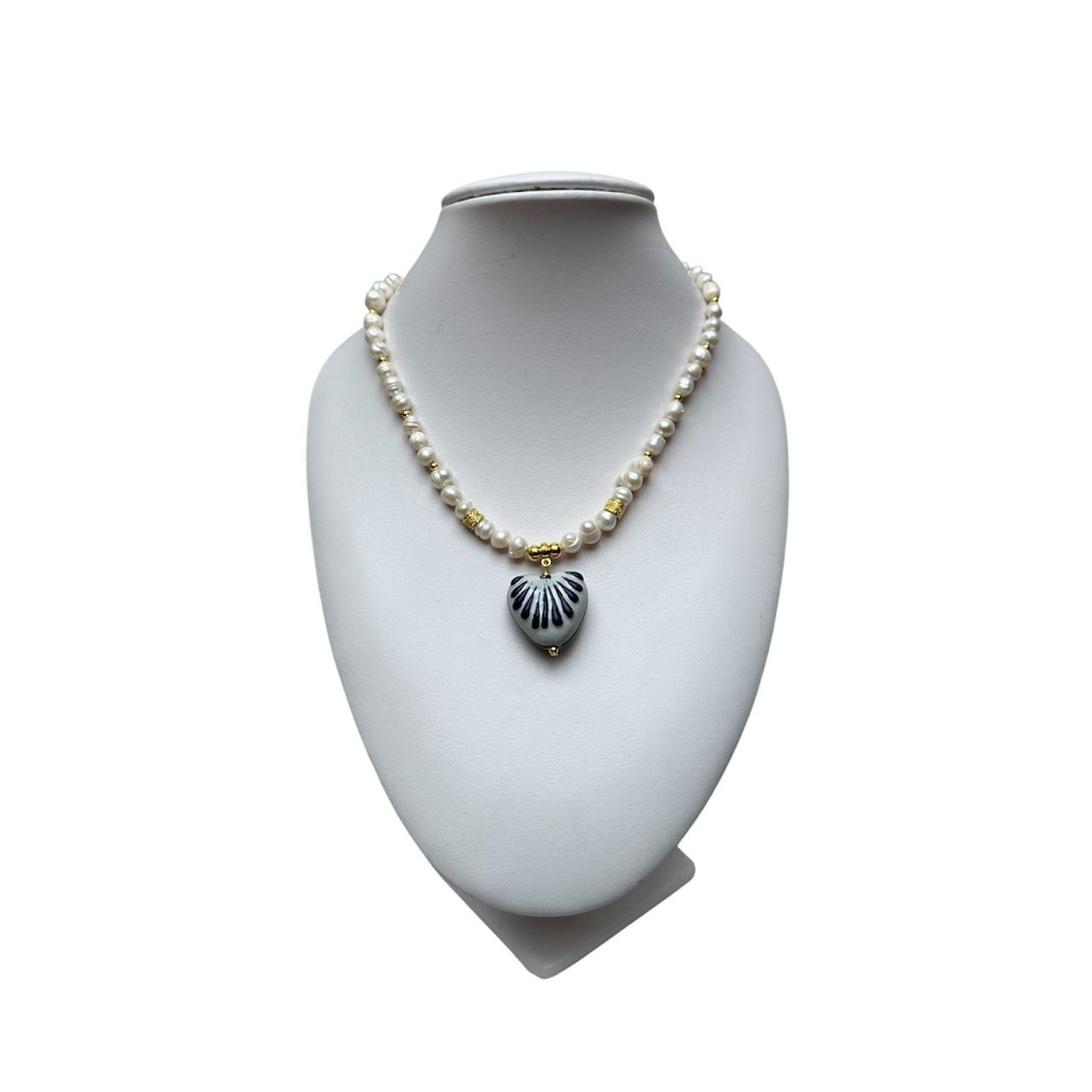 Collar Piedra De Rio Con Corazon Fondo Tradicional con Azul Cenefa
