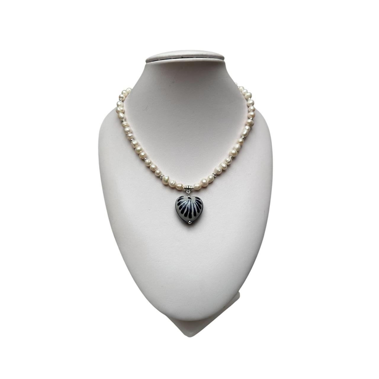 Collar Piedra De Rio Con Corazon Fondo Tradicional con Azul Cenefa