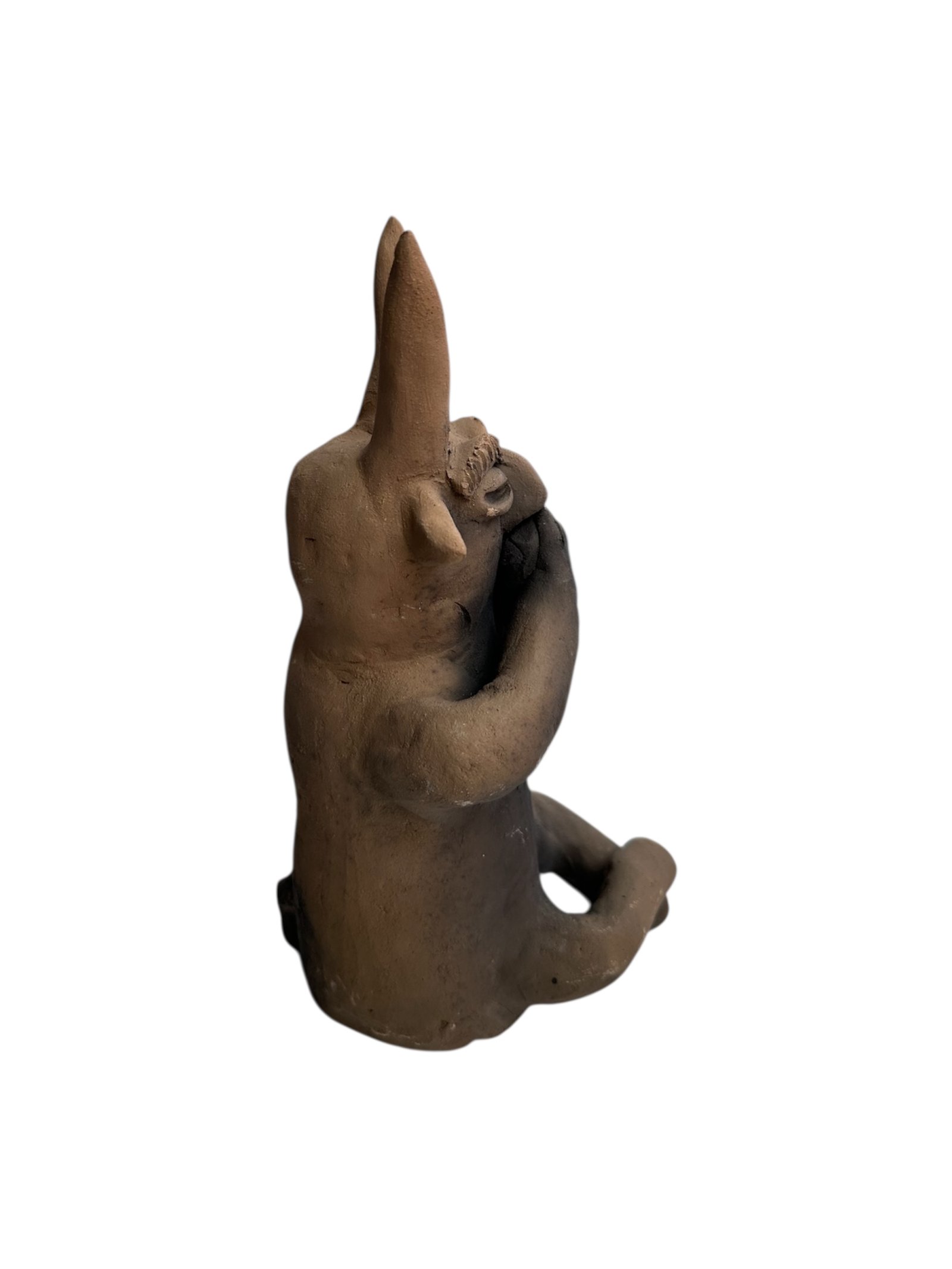 Es una pieza artesanal elaborada a partir de un tipo específico de arcilla que, al ser cocida, adquiere un color rojizo. Este barro se utiliza comúnmente en la fabricación de cerámica decorativa y utilitaria, especialmente en México. El término «pastillaje» hace referencia a un estilo de modelado y decoración que busca lograr un acabado texturizado y detallado, a menudo con relieve.