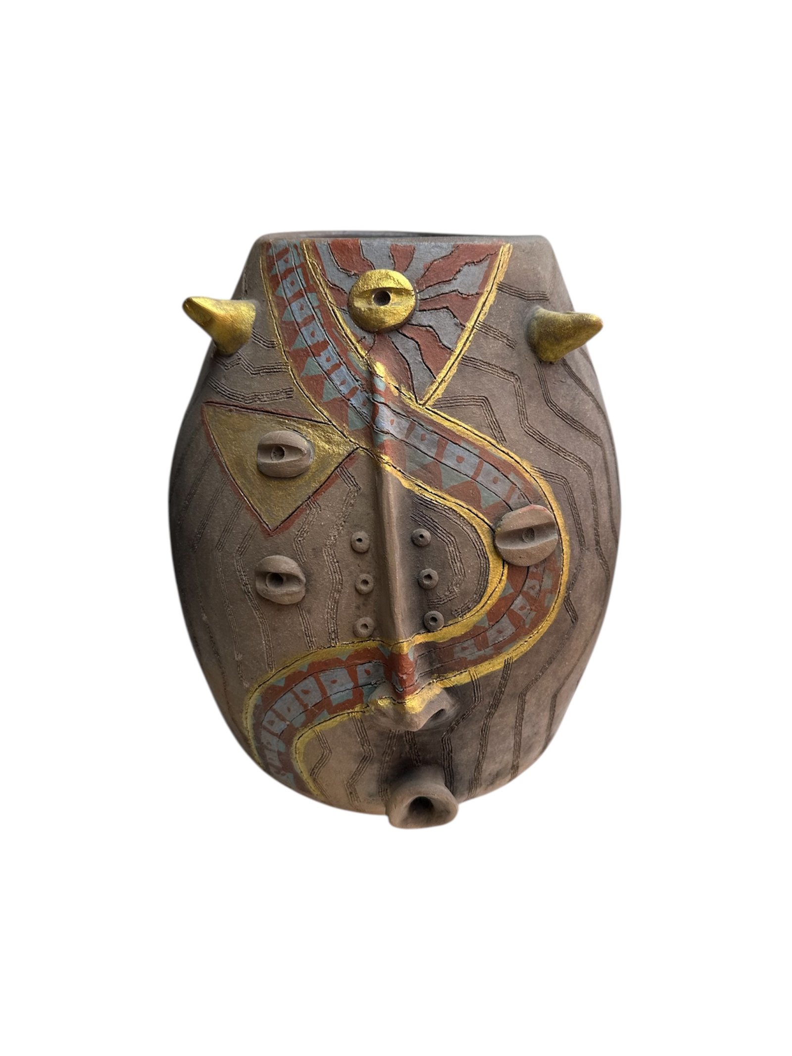 Florero Barril Barro Rustico Pintado
