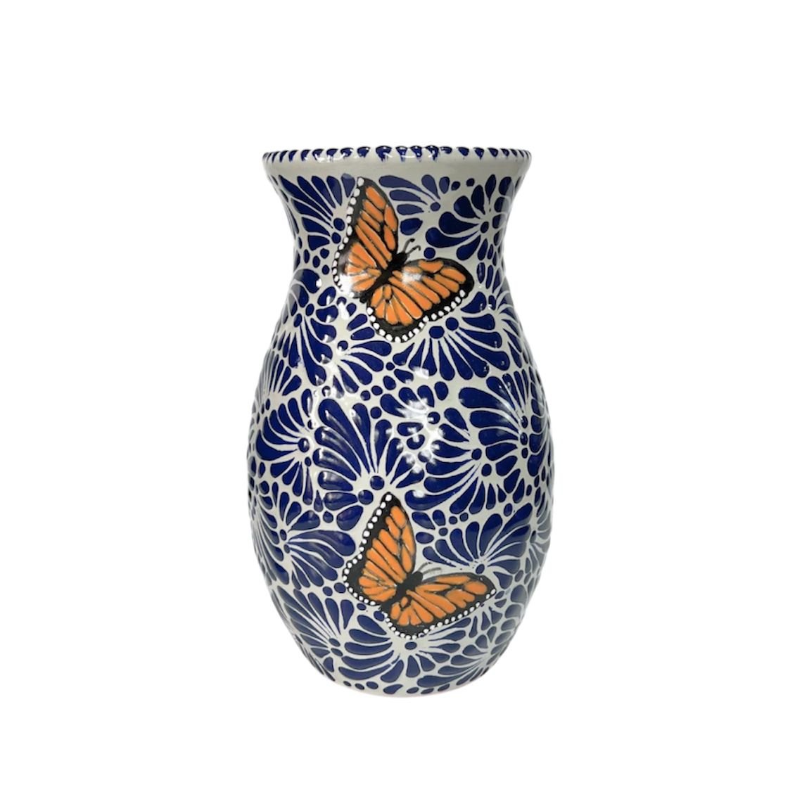 Florero Boliche Chico Fondo Blanco Con Azul Mik Mariposas