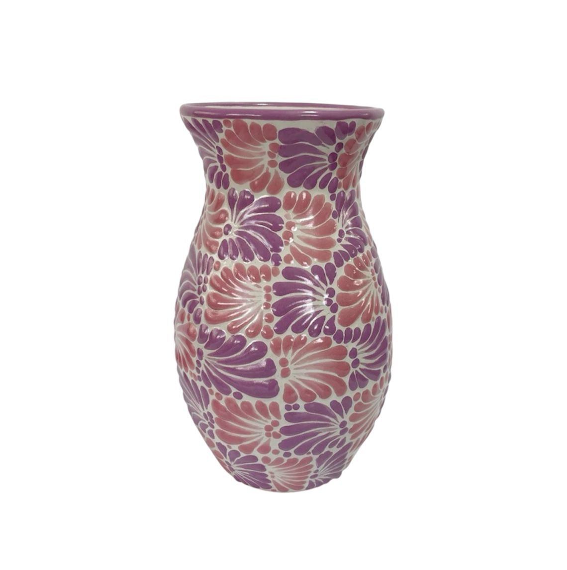 Florero Boliche Chico Fondo Blanco Con Rosa Y Morado Mik