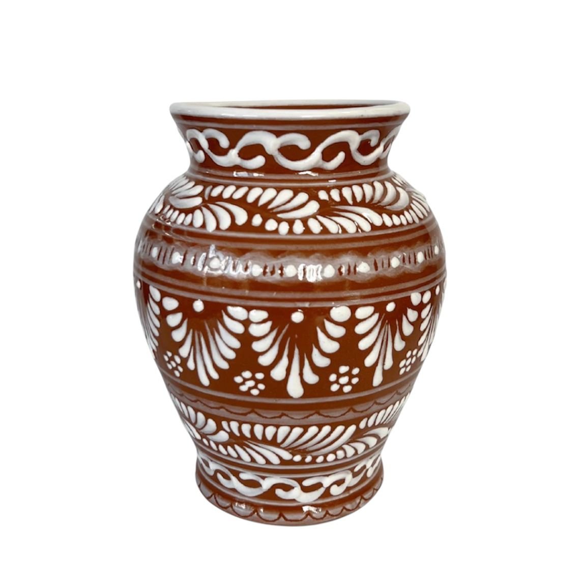 Florero Cantarito Fondo Terracota Con Blanco Cenefa