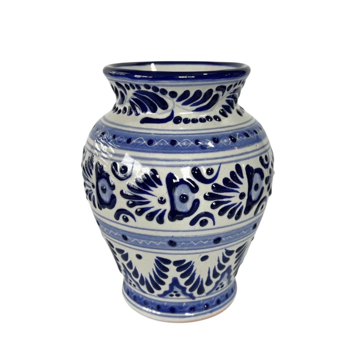 Florero Cantarito Fondo Tradicional Con Azul Cenefa