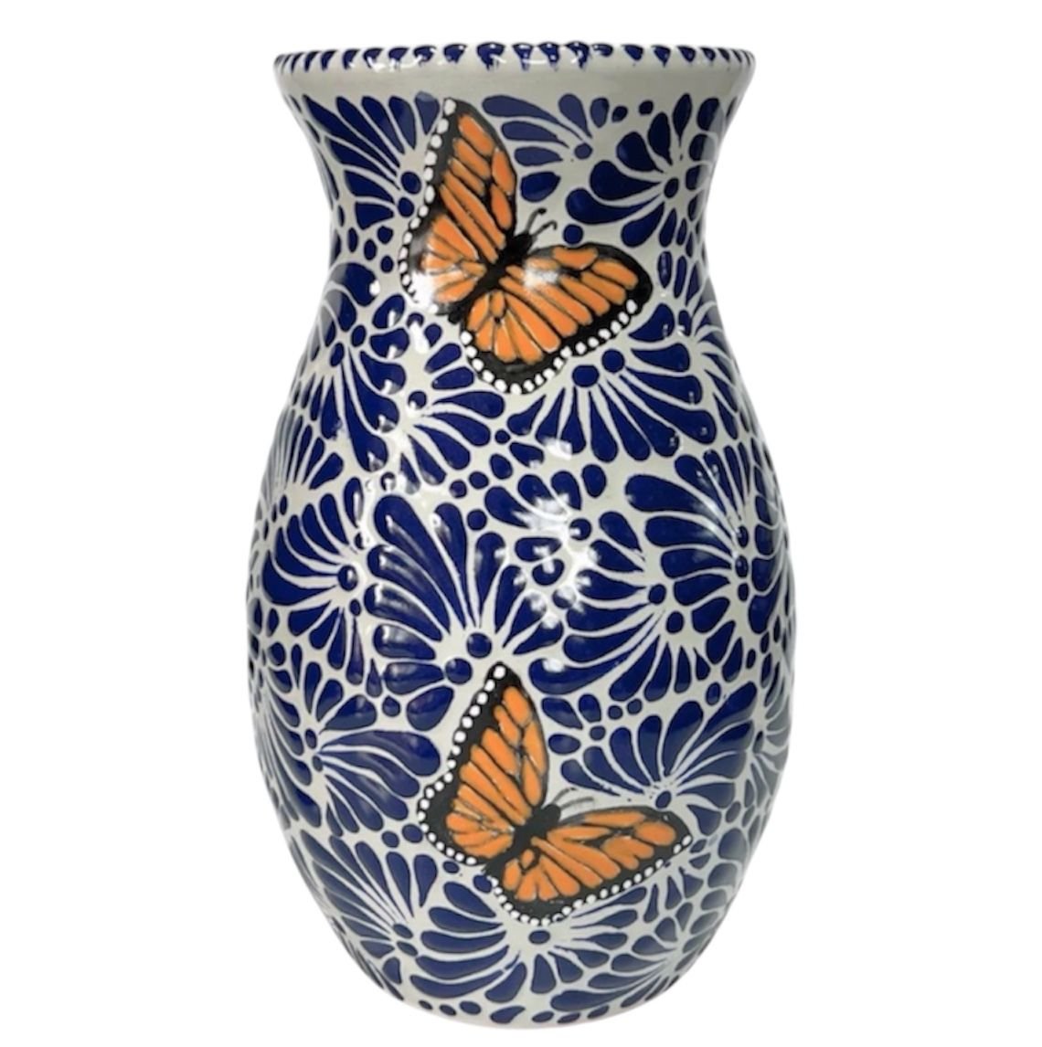 Florero Boliche Fondo Blanco Con Mik Azul Mariposas