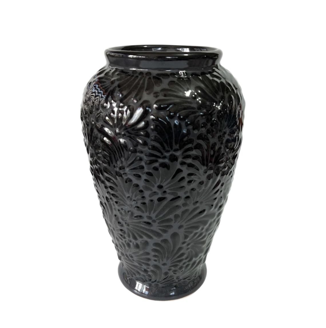Florero Jarron Alto Fondo Negro Con Negro Mik