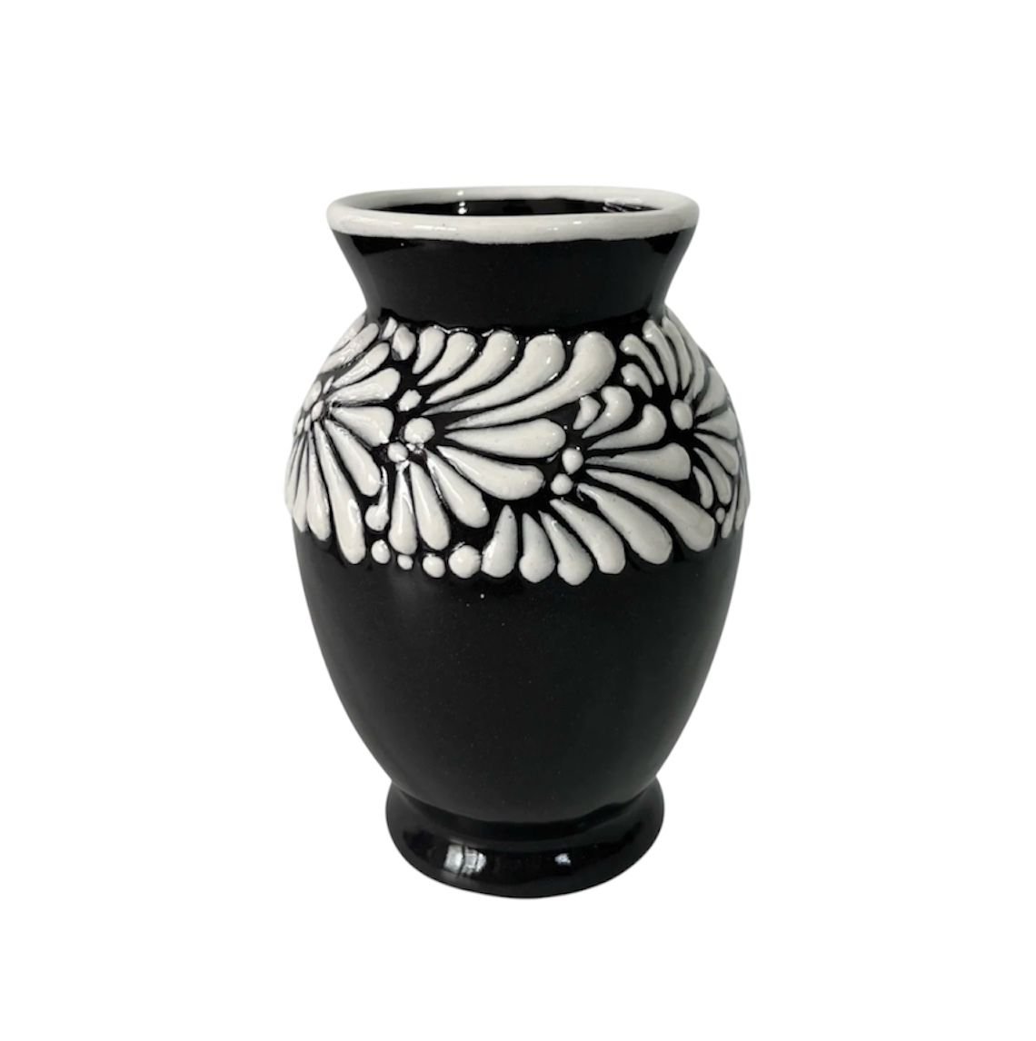 Florero Jarron Chico Fondo Negro Con Blanco Mik