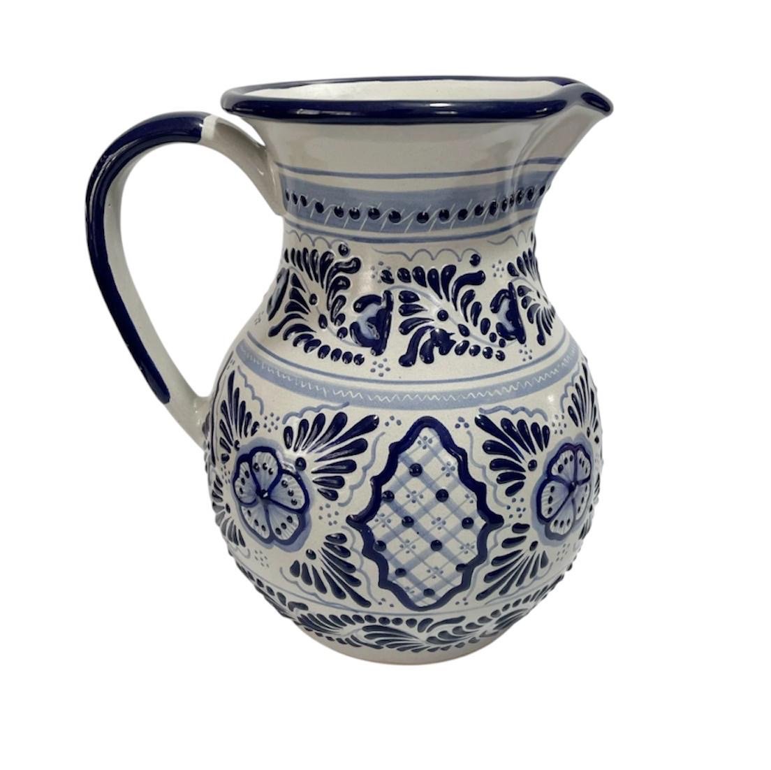 Jarra 25 Cm Fondo Tradicional Flor Al Centro Azul