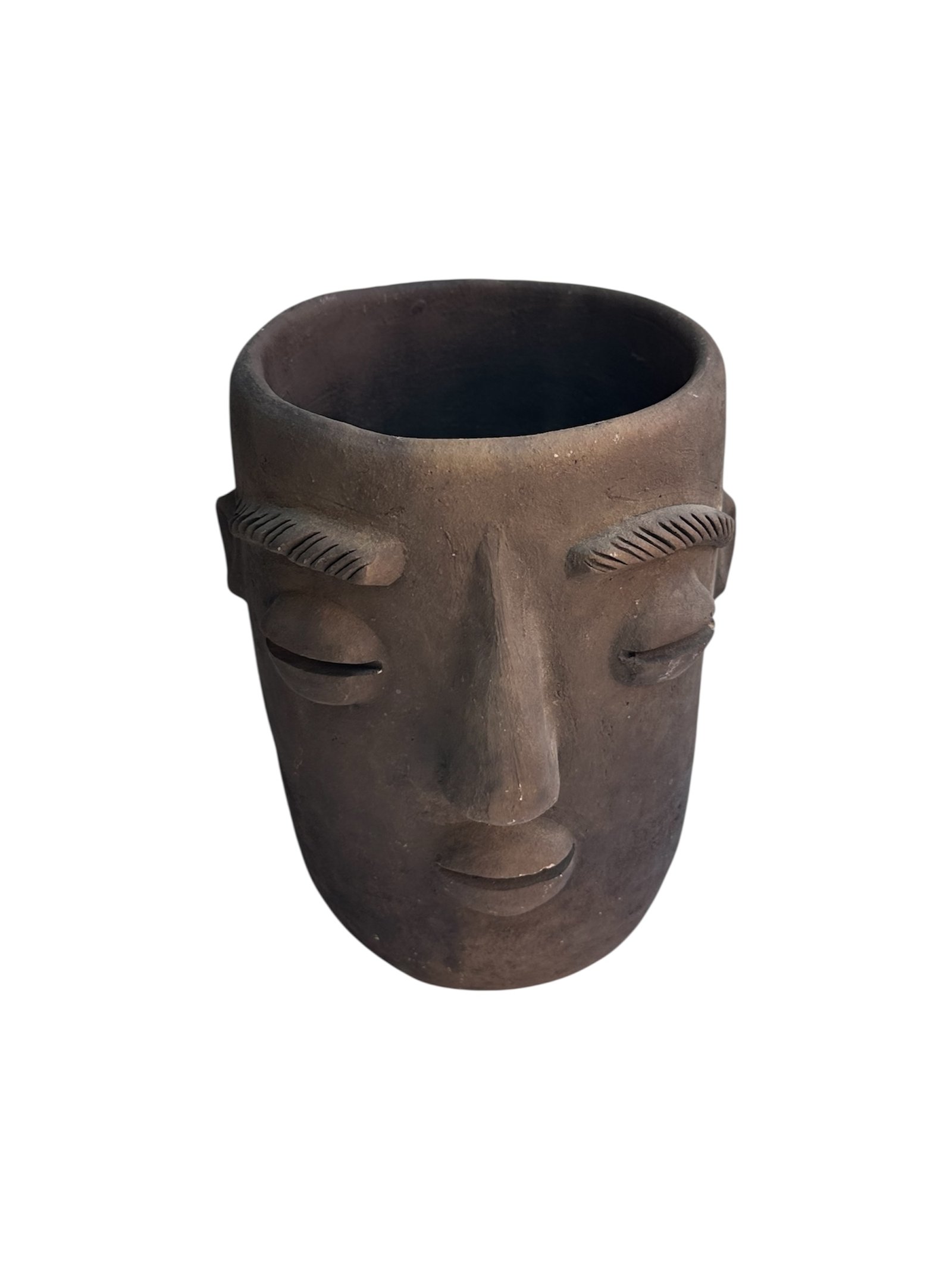 Maceta Rostro Cilindro Barro Rustico