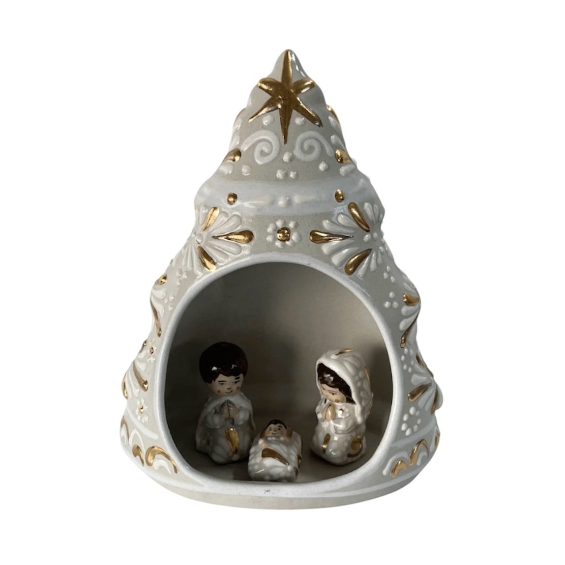 Nacimiento En Forma De Arbolito Fondo Tradicional Con Blanco Y Destellos De Oro