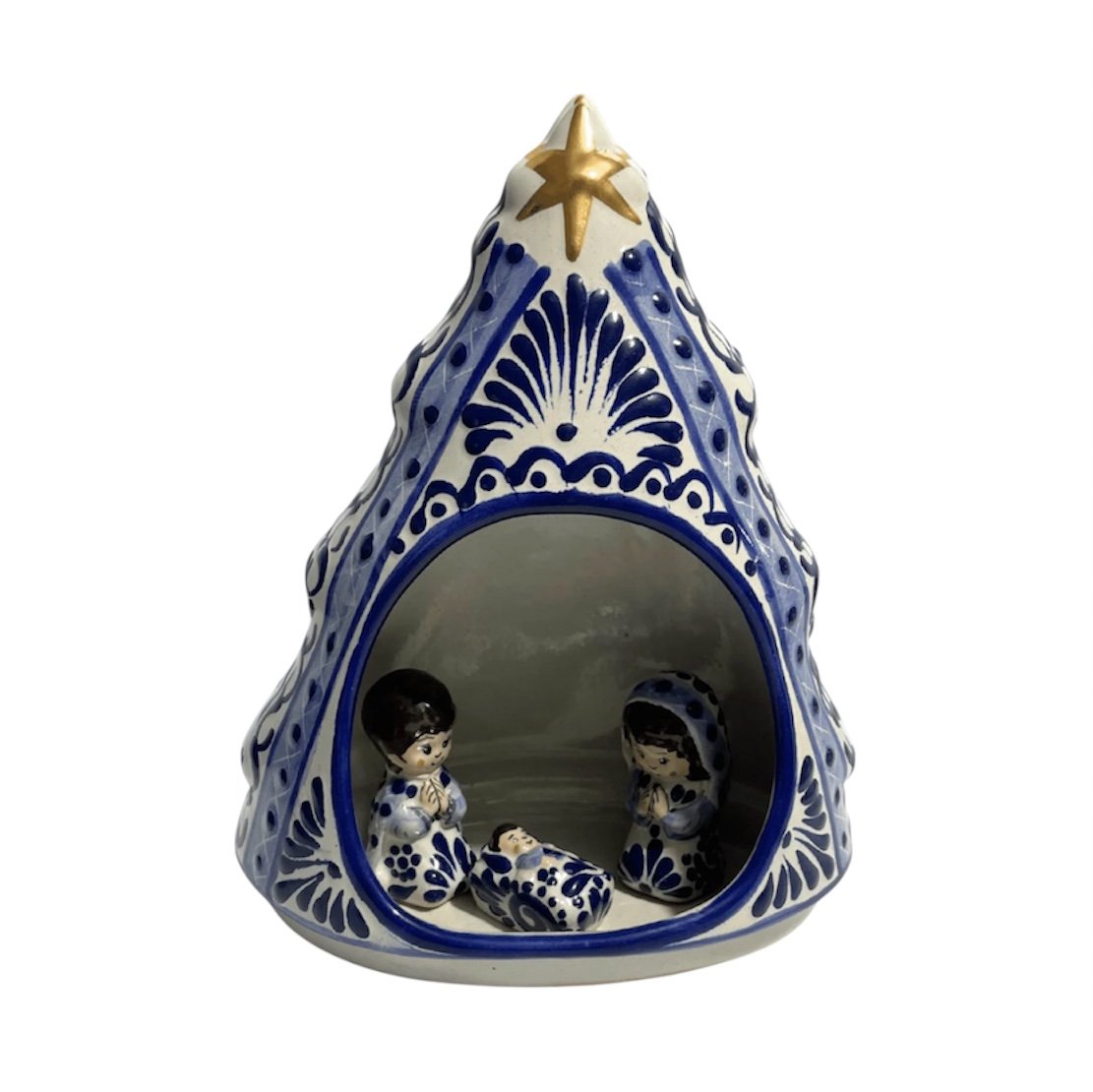 Nacimiento En Forma De Arbolito Fondo Tradicional Con Cobalto Y Destellos De Oro En La Estrella