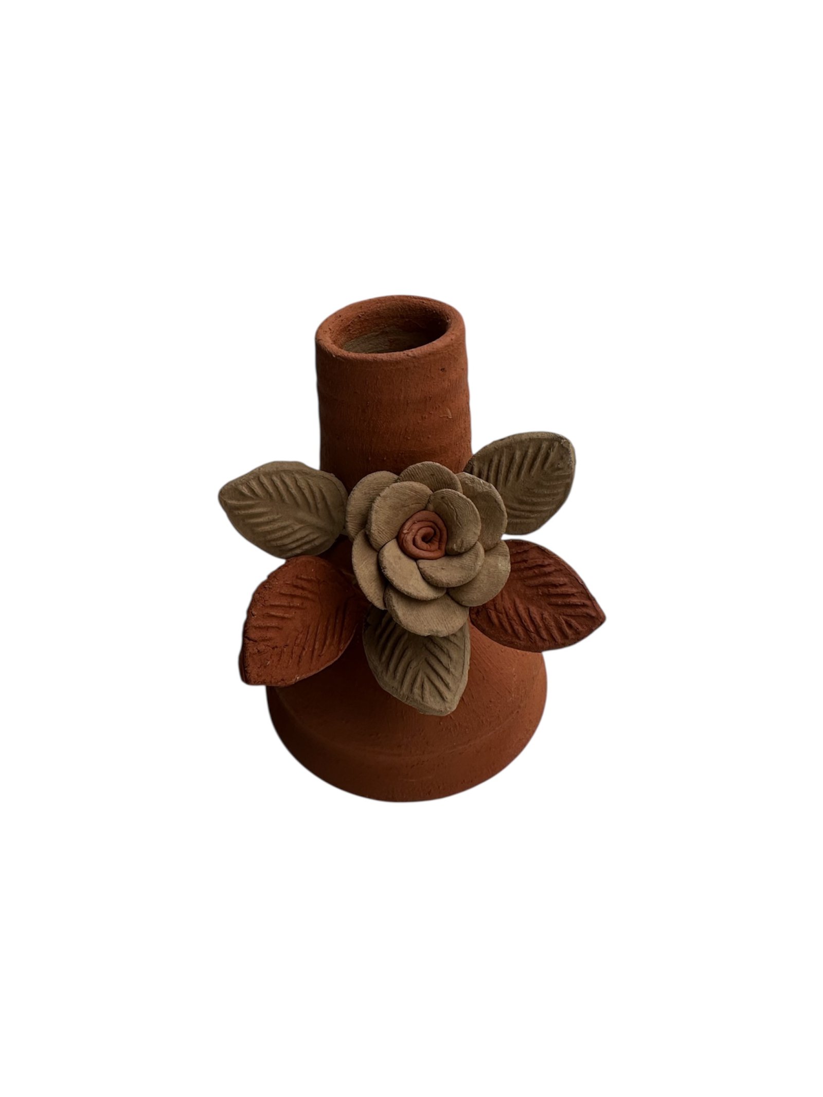 Es una pieza artesanal elaborada a partir de un tipo específico de arcilla que, al ser cocida, adquiere un color rojizo. Este barro se utiliza comúnmente en la fabricación de cerámica decorativa y utilitaria, especialmente en México. El término «pastillaje» hace referencia a un estilo de modelado y decoración que busca lograr un acabado texturizado y detallado, a menudo con relieve.