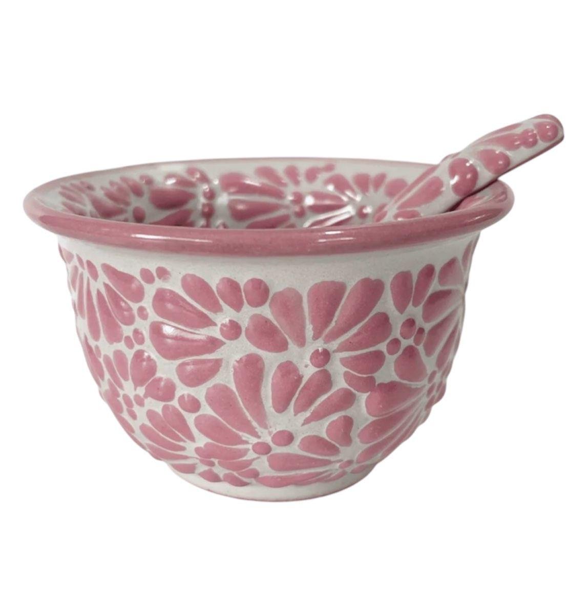 Salsera Con Cuchara Fondo Blanco Con Rosa Mik