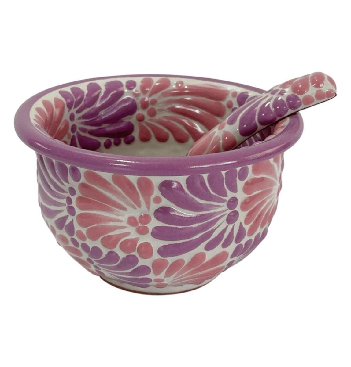 Salsera Con Cuchara Fondo Blanco Con Rosa Y Morado Mik