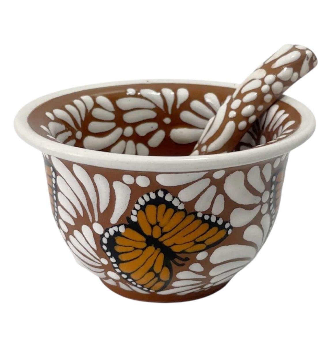 Salsera Con Cuchara Fondo Terracota Con Blanco Mik Mariposa