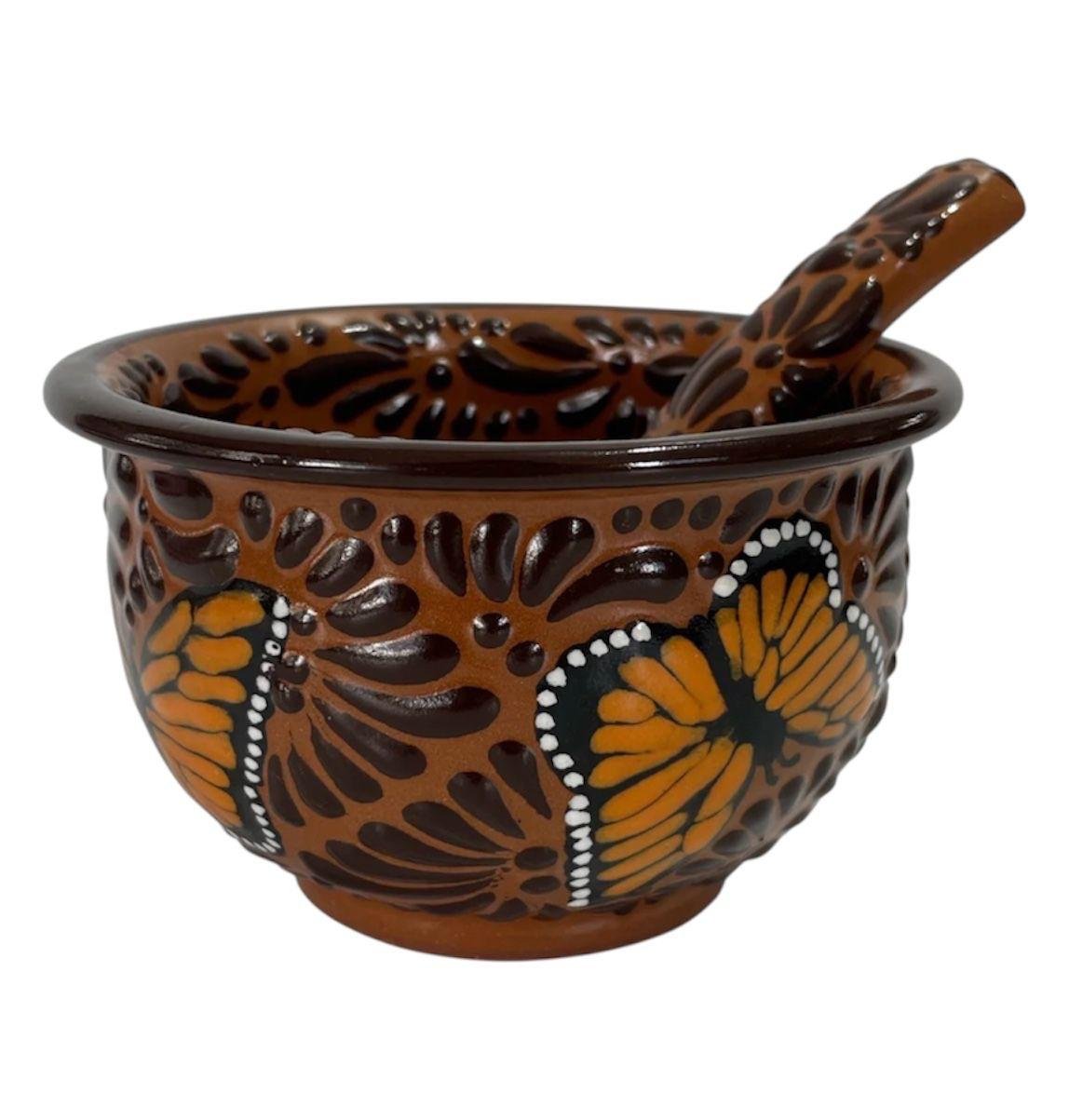 Salsera Con Cuchara Fondo Terracota Con Chocolate Mik Mariposas