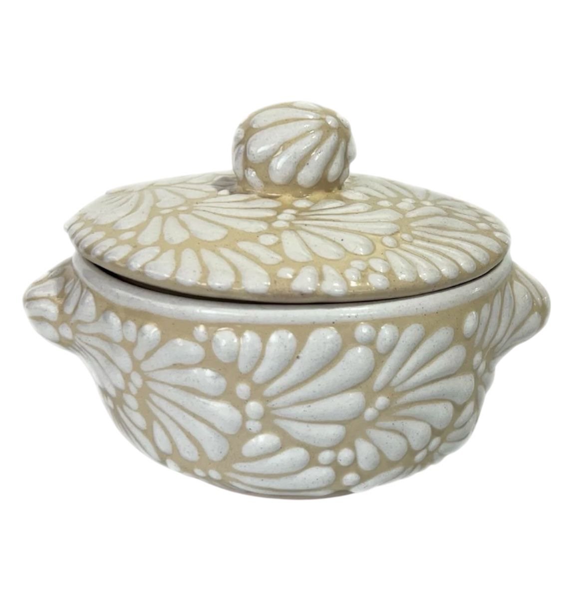 Salsera Con Tapa Fondo Crema Con Blanco Mik