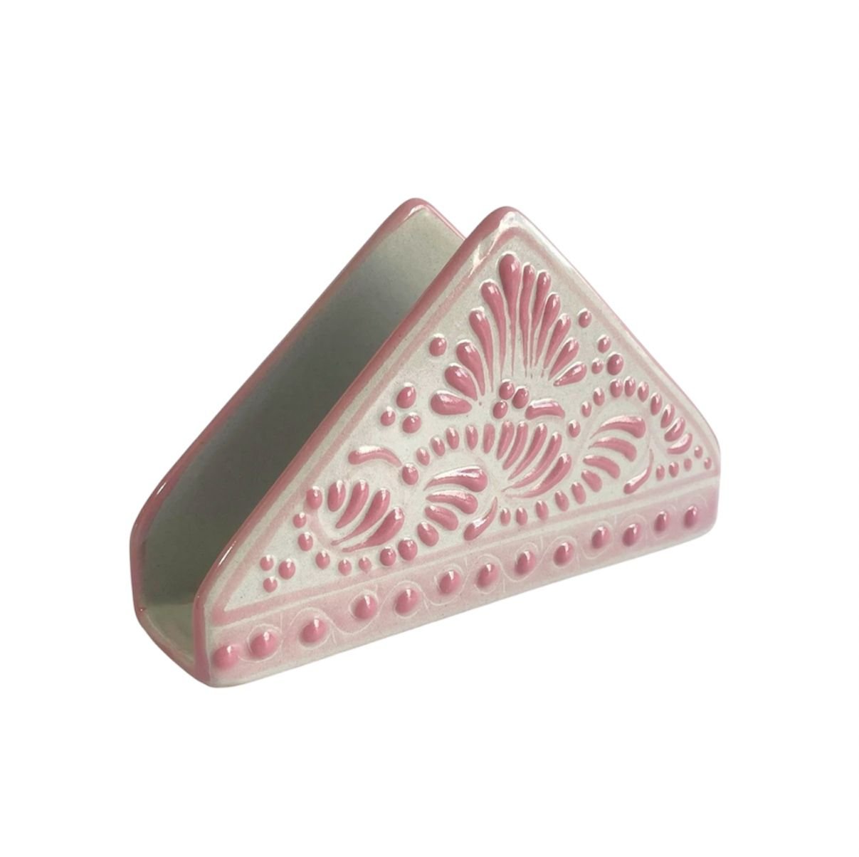 Servilletero Fondo Blanco Con Rosa Cenefa