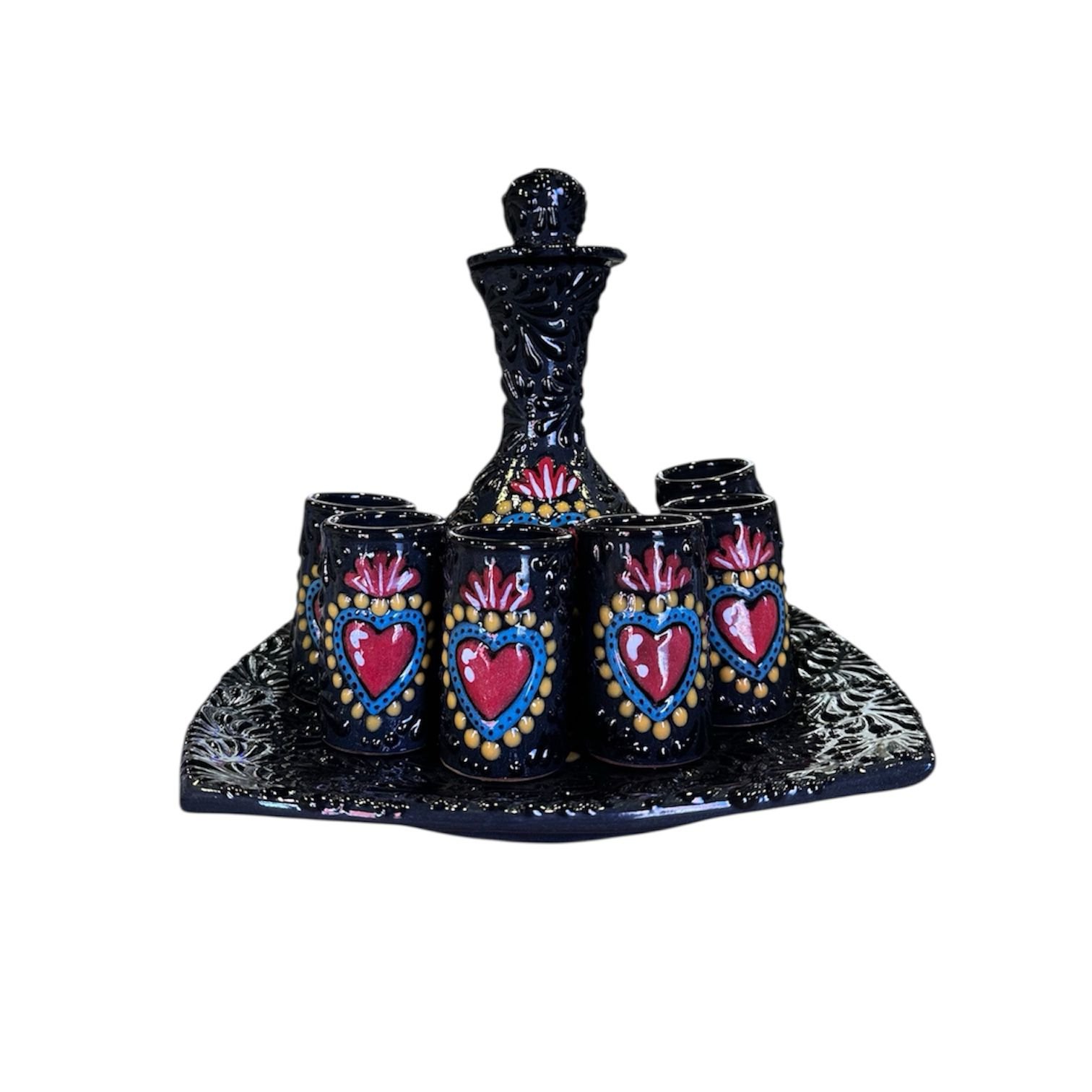 Set Licorera 8 Piezas Fondo Negro Con Negro Mik Corazon Sagrado
