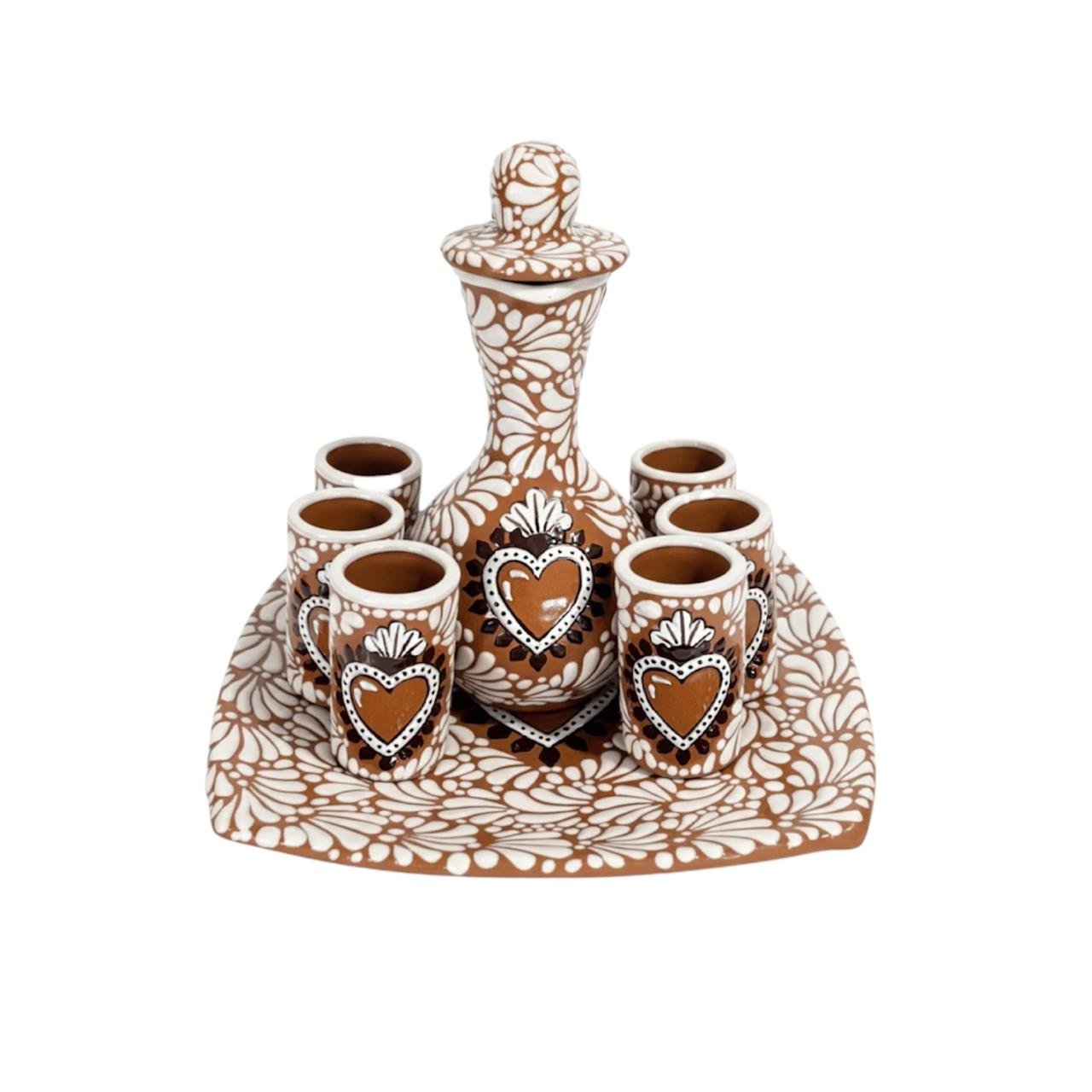 Set Licorera 8 Piezas Fondo Terracota Con Blanco Mik Corazon Sagrado
