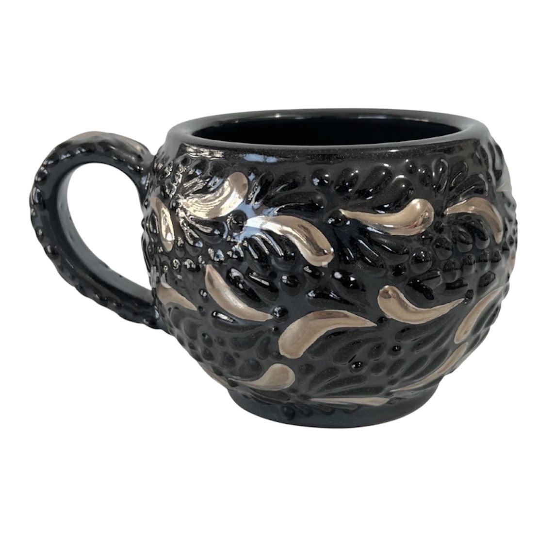 Taza Chocolatera Grande Fondo Negro Con Negro Mik Destellos De Plata