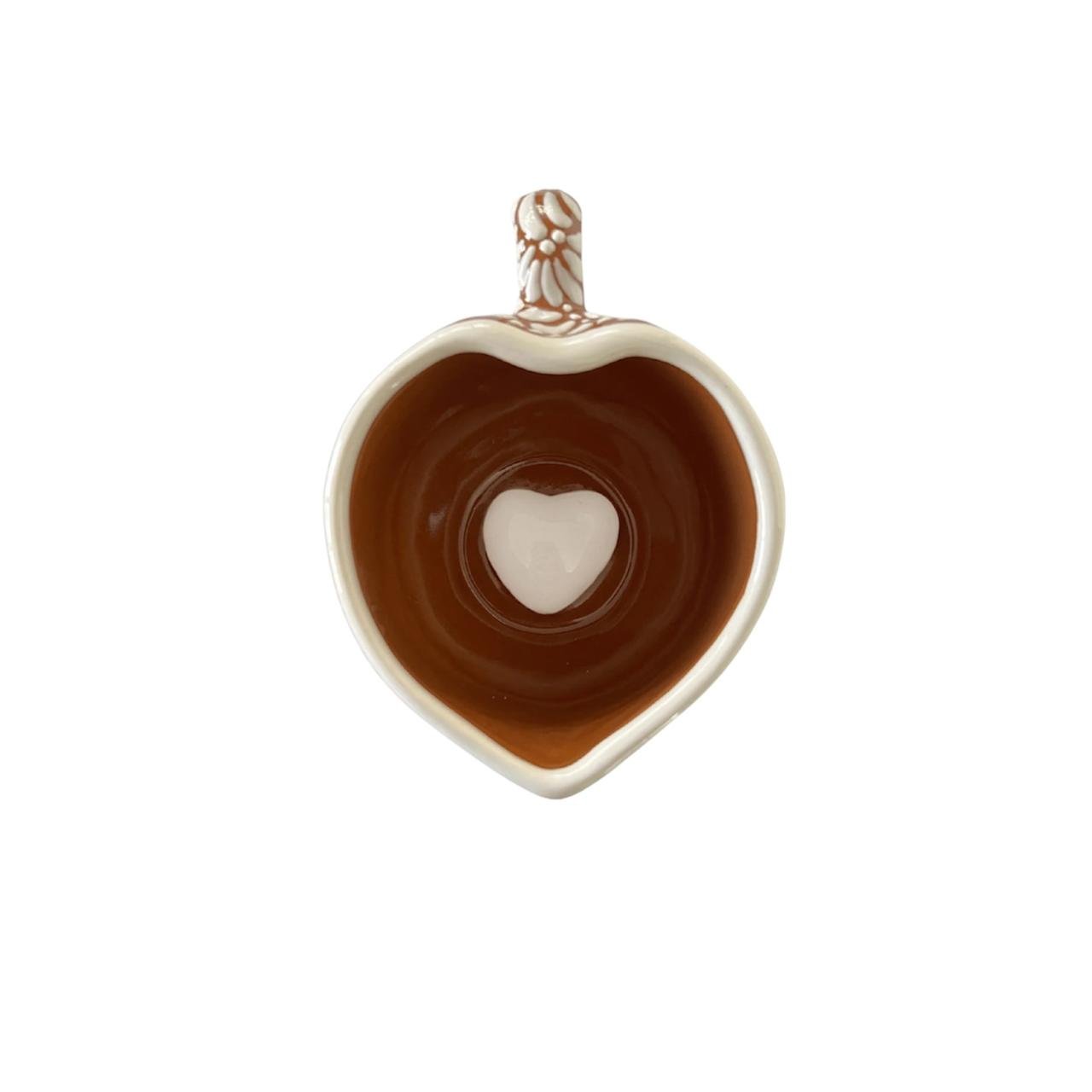 Taza Corazon Chocolatera Con Corazon Interior Fondo Terracota Con Blanco Mik