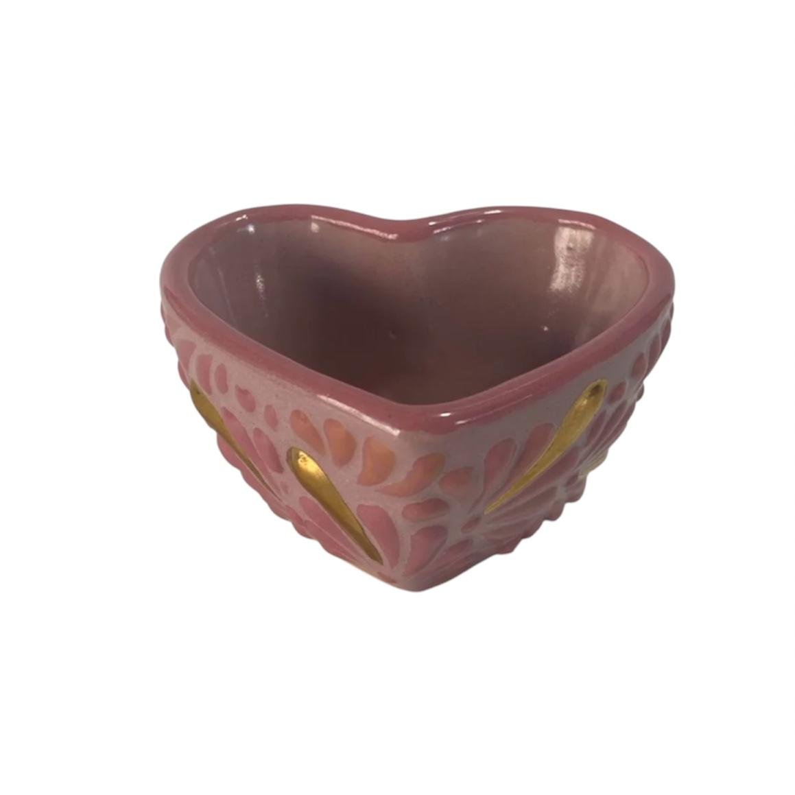 Tazon Forma de Corazon Fondo Rosa Con Rosa Mik Destellos De Oro