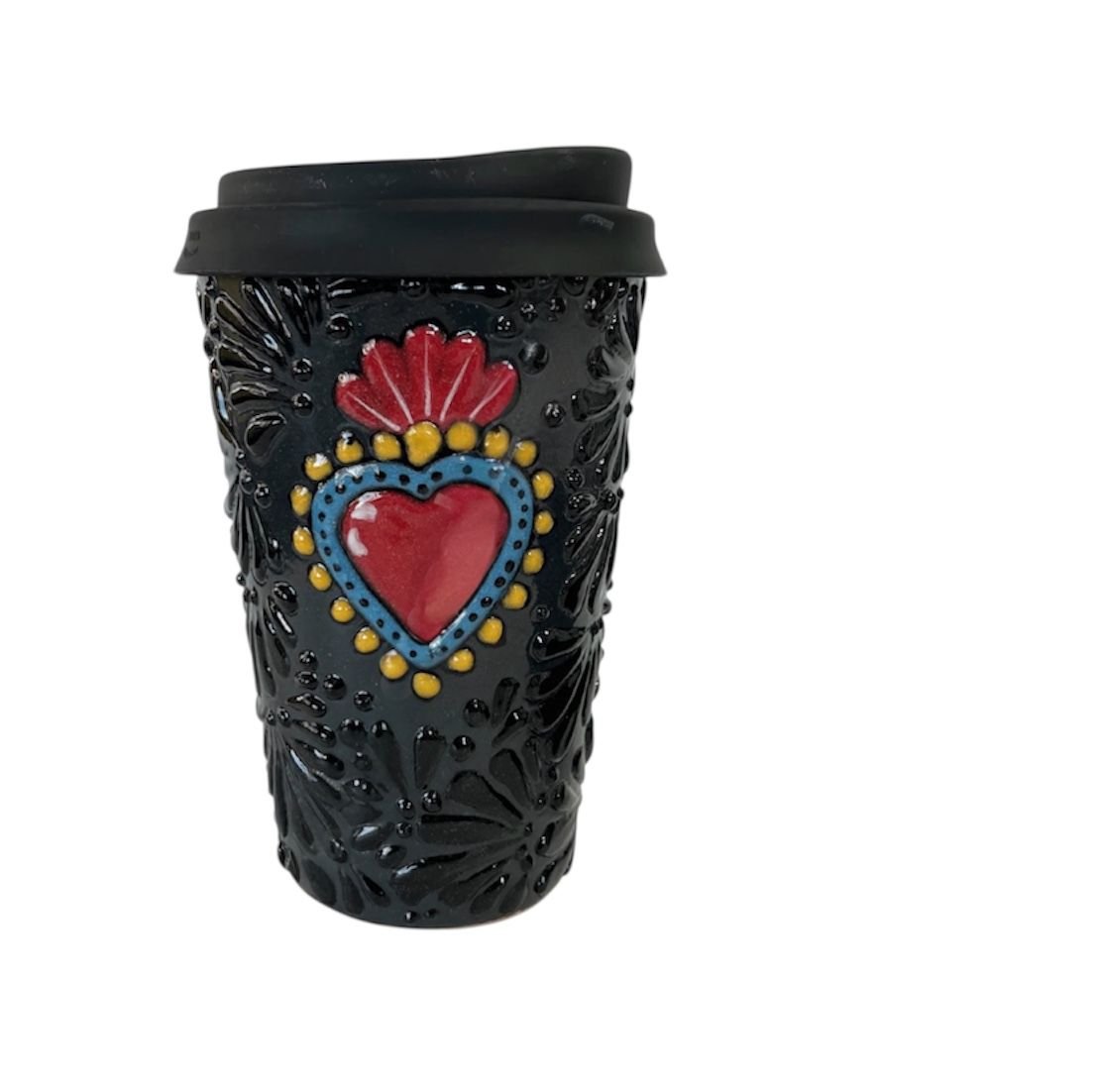 Termo 15 CM Fondo Negro Con Negro Mik Corazon Sagrado