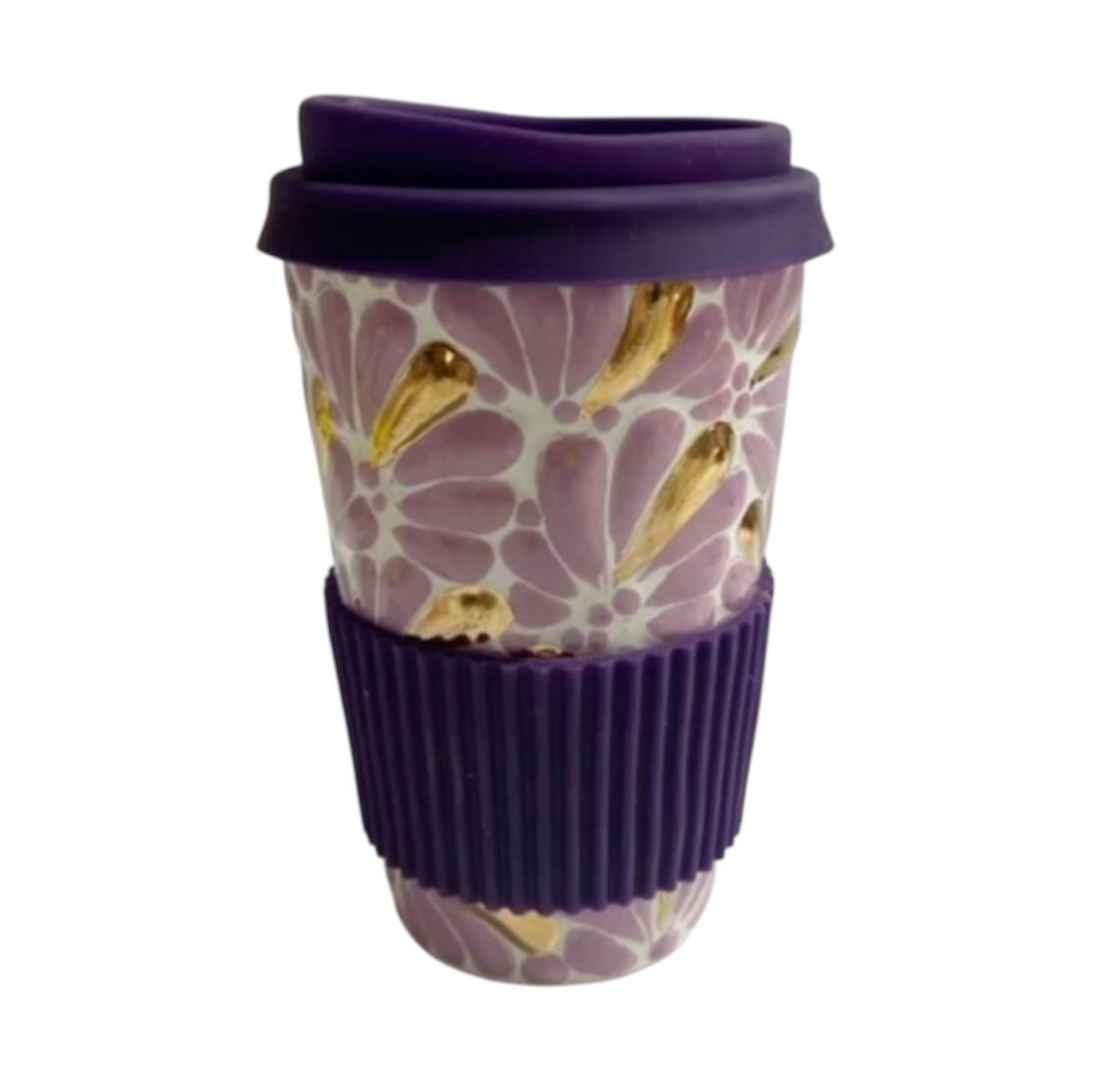 Termo 15 CM Fondo Tradicional Con Morado Mik Y Destellos De Oro Con Porta Caliente