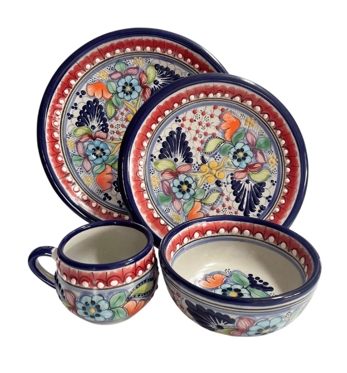 Vajilla Estilo Puebla Con Cenefa Roja