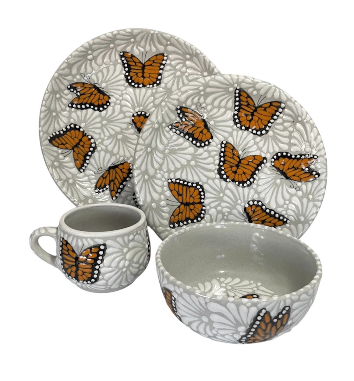 Vajilla Fondo Tradicional Con Blanco Mik Y Mariposa