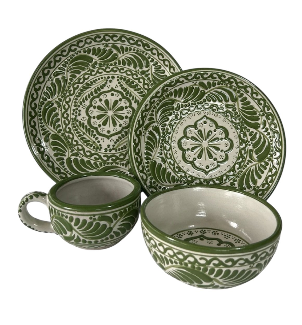 Vajilla Fondo Tradicional Con Verde Limon Con Flor Al Centro