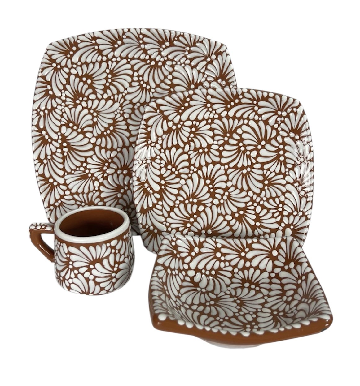 Vajilla Semicuadrada Fondo Cafe Con Blanco Mik